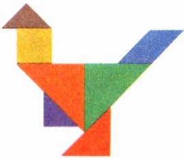 形状星球的校园里,同学们正在学习古诗《画鸡》,并用七巧板拼出了一只大公鸡的图形。