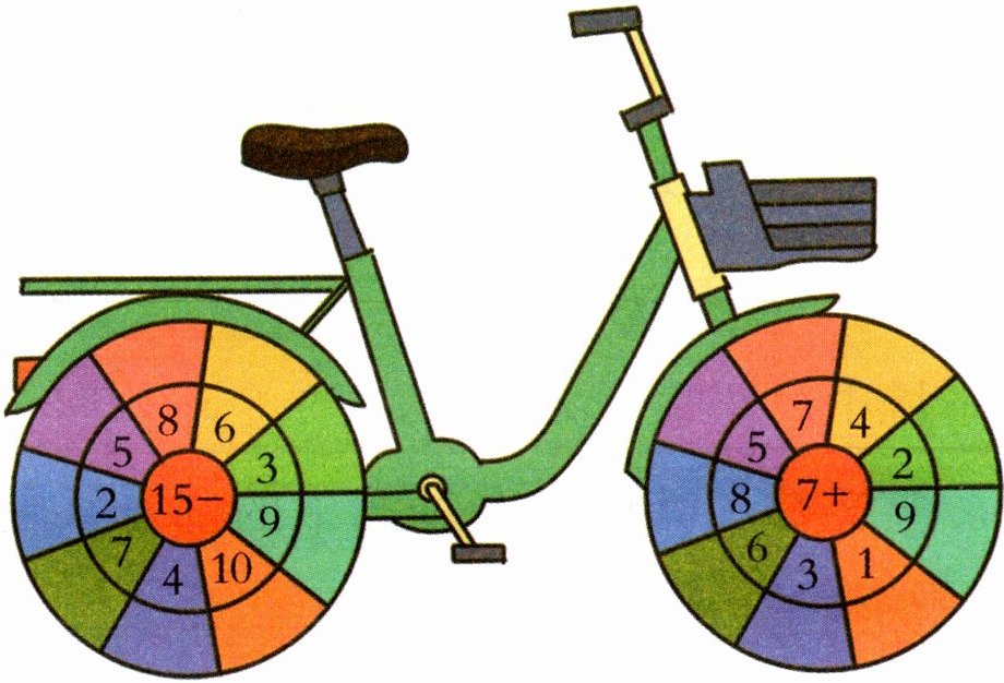 (1)请你从自行车前轮上选一组算式,要求计算结果大于10,并写下来。