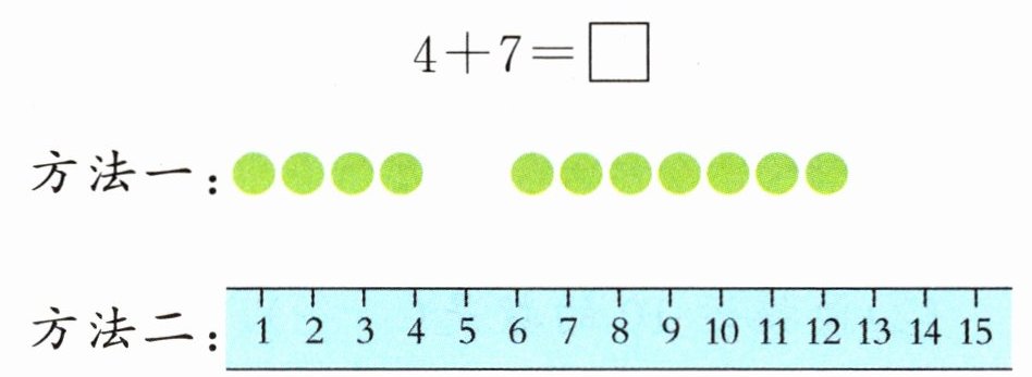 1 你是怎样计算 $ 4 + 7 $ 的?请你圈一圈,画一画。