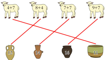 2 古人常常根据自己所需进行物物交换,图中是古人用羊来交换物品。你能根据羊身上的算式,看