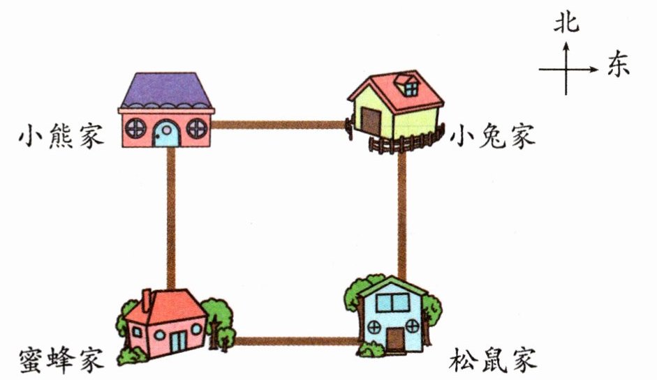 (1)蜜蜂 松鼠 (2)北 东北 (3)东南 西北