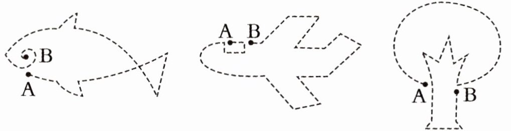 第一个图案:$A$→鱼身外轮廓→鱼眼($B$所在处)。