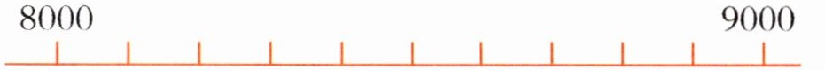 4 世界上海拔最高的山峰是珠穆朗玛峰,海拔约8848米。在数线上标出8848的大致位置。