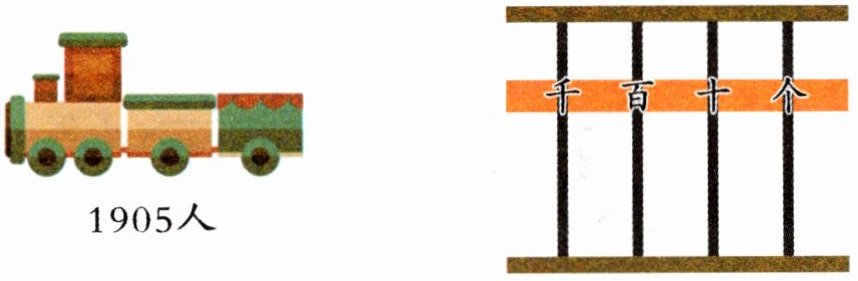 开心列车载客1905人,在算盘上拨出这个数,画出你拨的数,再读一读。