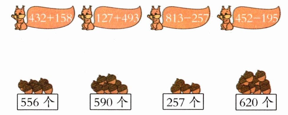 结果小于 300 的算式有:562 - 297 结果大于 500 的算式有:450 + 198、225 + 407、728 - 206、335 + 199。