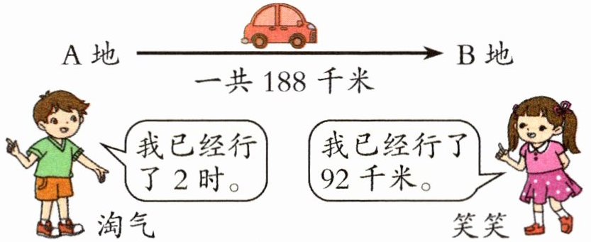 3 要想计算还需行多少千米,还要知道什么数学信息?想一想,谁说得对?然后尝试解答。