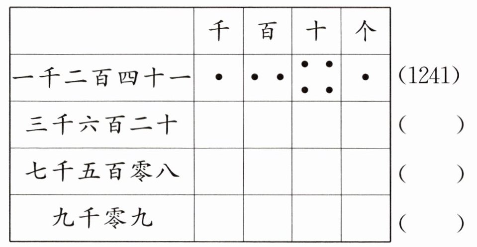 4 先读数,在空格内画圆点,再把这个数写出来。