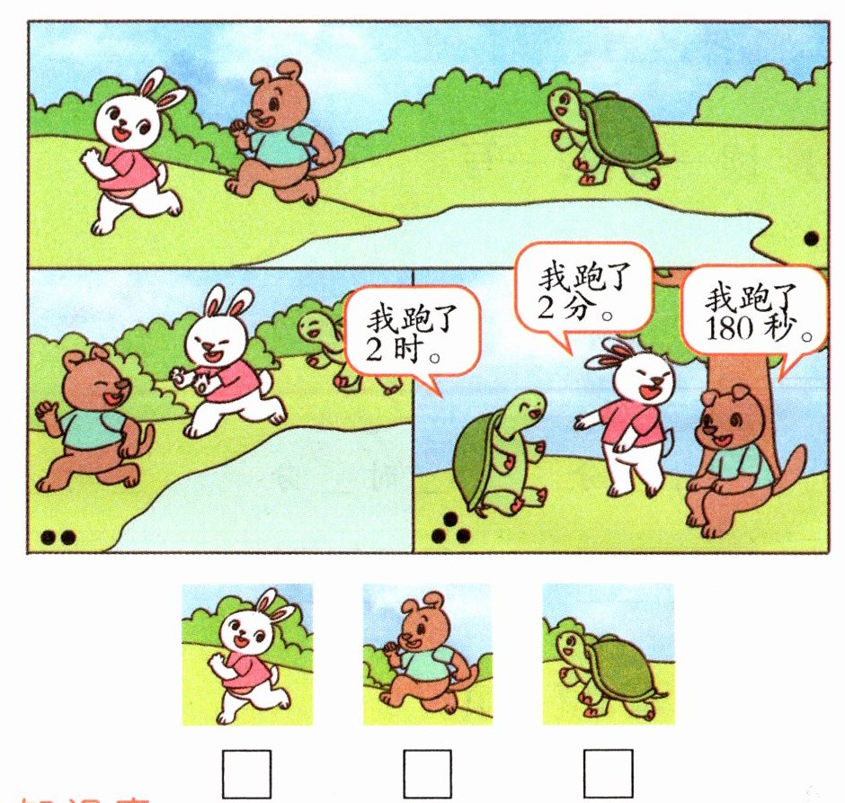2 同等距离,谁跑得快?选一选,在跑得快的动物下面画“√”。