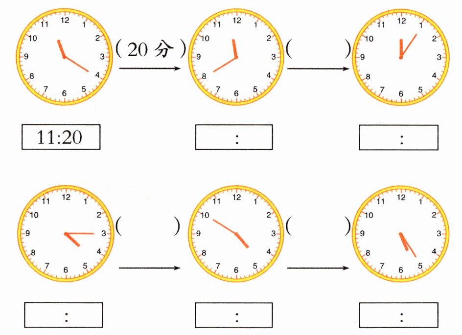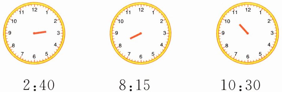 2 在下面的钟面上画上分针。