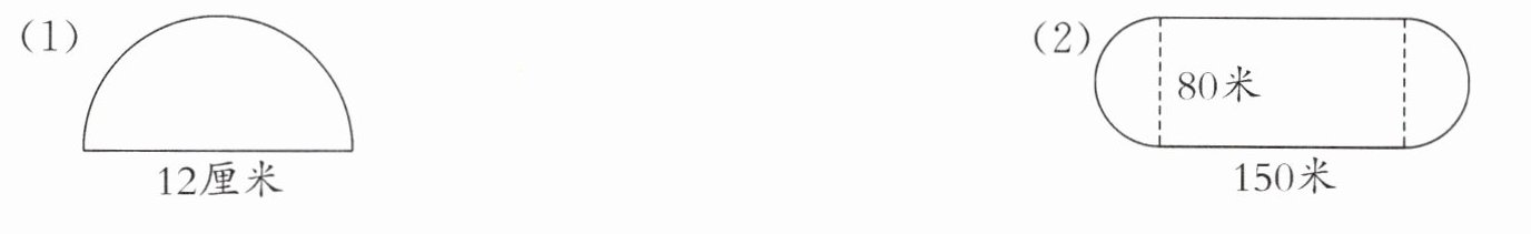 (2)$3.14×80+150×2=551.2$(米) $3.14×(80÷2)^{2}+150×80=17024$(平方米)