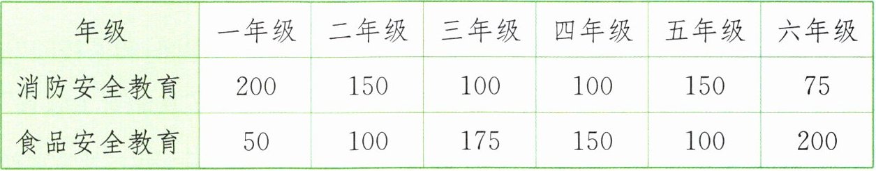 4. 统计地绘图活动人数 下面是一至六年级同学参加绘制“消防安全教育”“食品安全教育”两种地绘图活动的人数情况统计表。