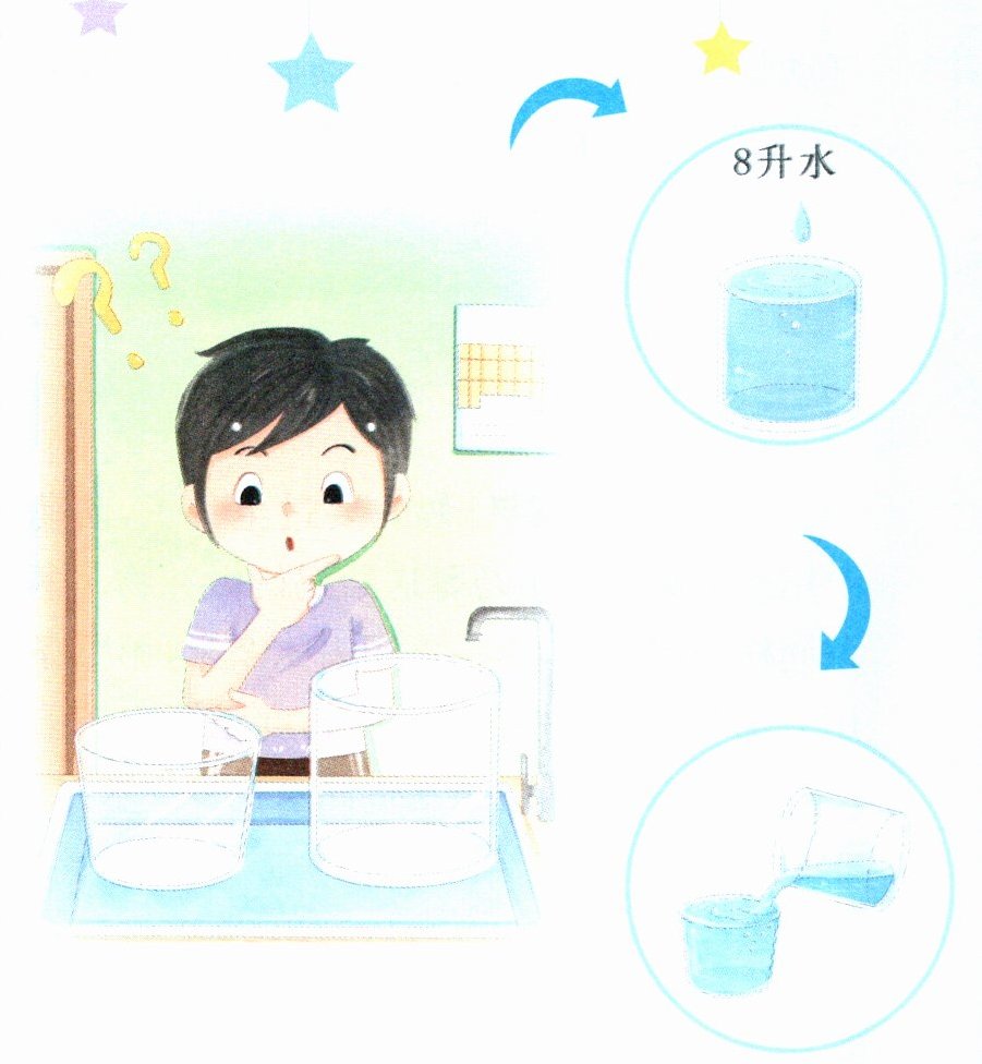 2. 把B容器中的5升水倒入A容器。