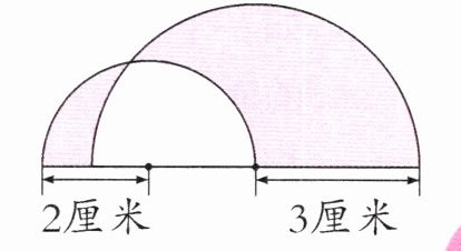 4. 将半径分别是3厘米和2厘米的两个半圆如右下图放置,求涂色部分的周长。