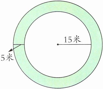 求草坪的面积就是求圆环的面积。外圆的半径是$15+5=20$(米),内圆的半径是15米。