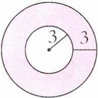 根据圆的面积公式,分别求出外圆和内圆的面积,再用外圆面积减去内圆面积求出涂色部分的面积,即圆环面积。