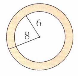 $3.14×(8^{2}-6^{2})=87.92$(平方厘米)