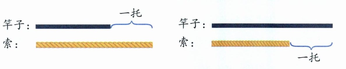 折回索子(即索长的一半$\frac{x + 5}{2}$)量竿,比竿子短一托($5$尺),可列方程: