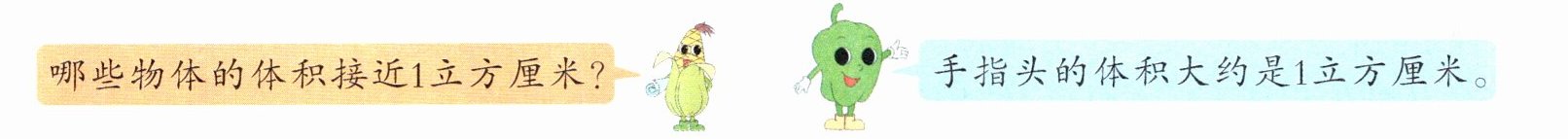 棱长1厘米的正方体,体积是1立方厘米。一节手指头、骰子等物体的体积接近1立方厘米。