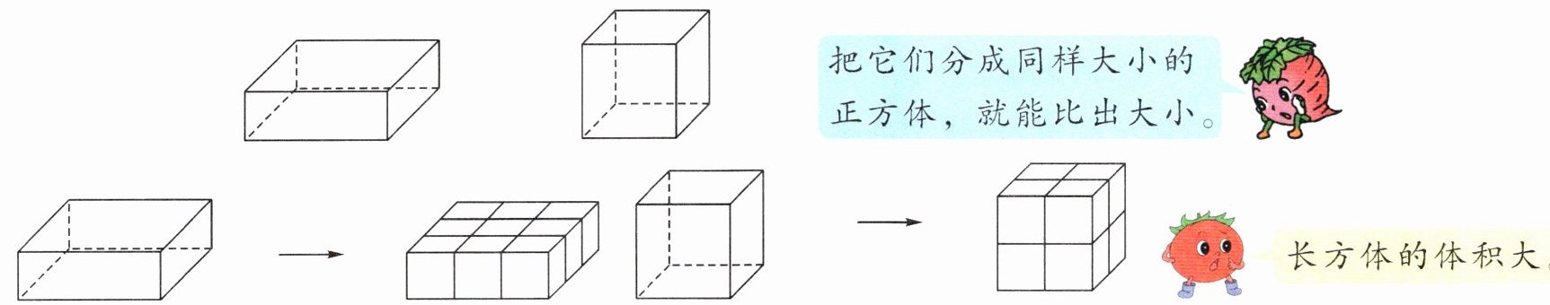 (1)不能直接判断出图中长方体和正方体的体积哪个大。可以将它们分成同样大小的小正方体,就能比较出()的大小。