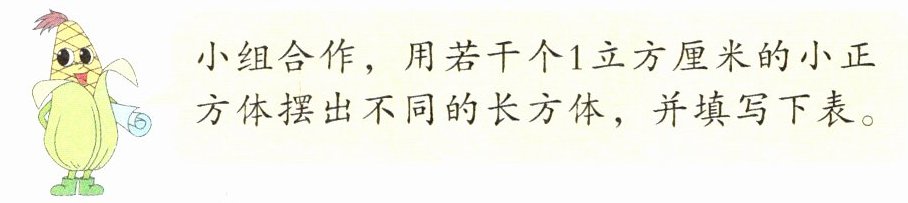 小组合作,用若干个1立方厘米的小正方体摆出不同的长方体,并填写下表。