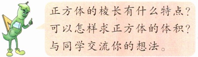 正方体的12条棱长度相等,正方体的体积$=棱长×棱长×$棱长。