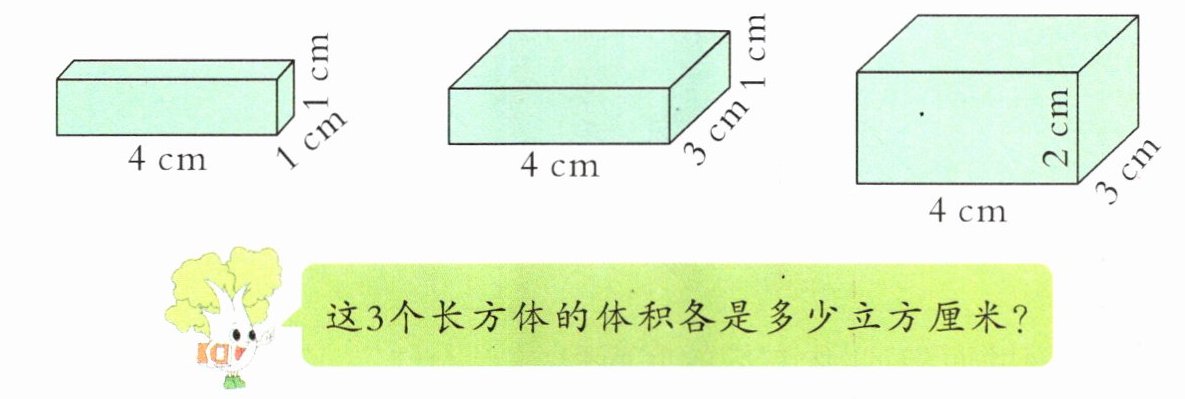 例2 用1立方厘米的小正方体摆出下面的长方体,各需要多少个?先想一想,再摆一摆。