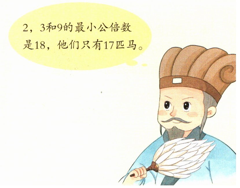 从前有一位老人,在他临终时,三个儿子围在床前。他对儿子们说:“我有十七匹马,留给你们,三个人分。老大呢,出力最多,得总数的二分之一;老二得总数的三分之一;老三最小,你就拿总数的九分之一。”说完这几句话,老人就去世了。三兄弟执行遗嘱时,一致认为这些马是父亲生前心爱之物,决不能将其中任何一匹劈成几块瓜分,但是遗嘱又要完全照办,如何是好呢?正巧,这时他们的老娘舅骑马赶来了,听完事由,眉毛一扬,说:“我来分。”