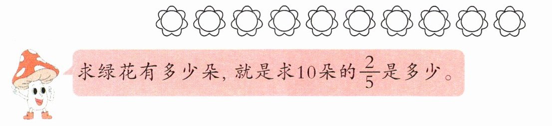 求10朵的$\frac {2}{5}$是多少,也可以用乘法计算。