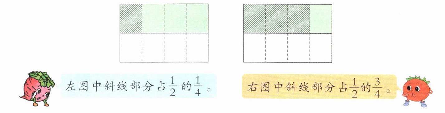 左图中斜线部分占$\frac {1}{2}的\frac {1}{4}$。