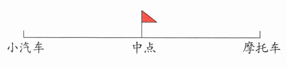 3. 小汽车和摩托车同时从两地相向开出,摩托车每小时行驶50千米。经过3小时,小汽车已驶过中点15千米,此时小汽车与摩托车还相距6千米(未相遇),小汽车每小时行驶多少千米?(请先在图中画出3小时后小汽车“★”和摩托车“◎”的大概位置,再列式解答)