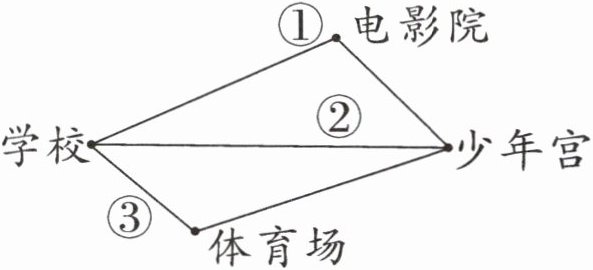 1. 如图,从学校到少年宫有三条路线,最近的是()号路线,用三角形的知识解释是()。