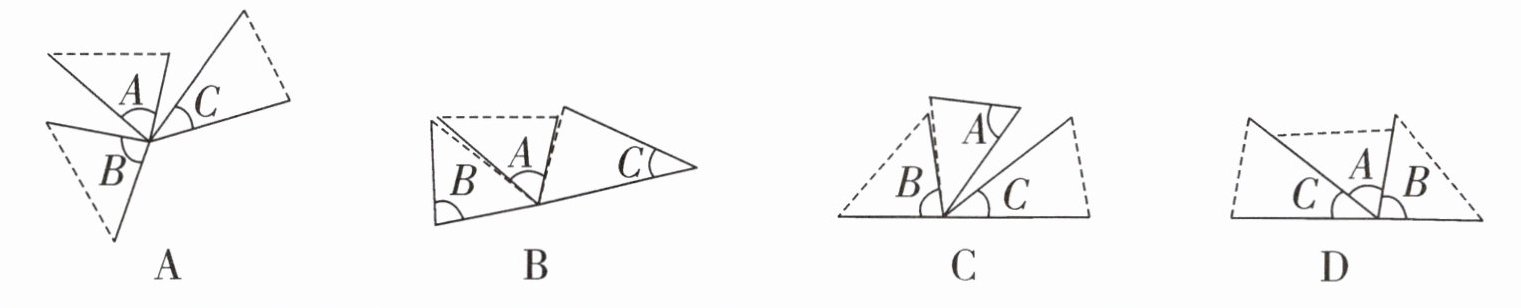 2. 明明想要知道三角形ABC内角和的度数,下面拼法中正确的是()。