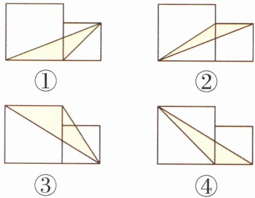 9. 右下面各图形都是由一个边长为6cm的大正方形和一个边长为4cm的小正方形组成的。算一算涂色部分面积相等的是哪几个图形。