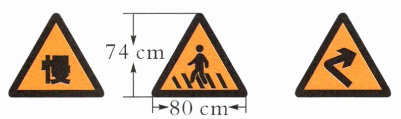 5. 做下面这样的三块标志牌大约需要多少平方厘米的铁皮?(三块标志牌同样大小)