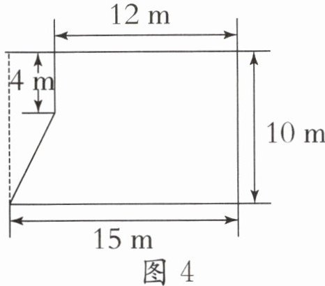 方法四:$15×10-(4+10)×(15-12)÷2= 129$(平方米)