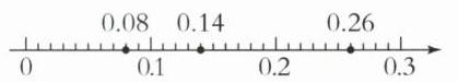 6. 先在图中表示0.08、0.14、0.26,再分别写出这3个数保留一位小数后的近似数。