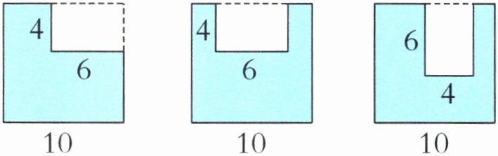 1. 如右下图,在边长是10厘米的正方形纸片中剪去一个长6厘米、宽4厘米的小长方形,三种剪法中,剩下的部分(