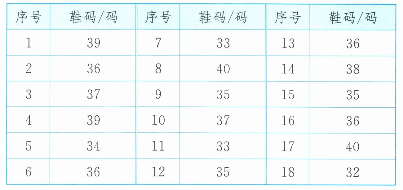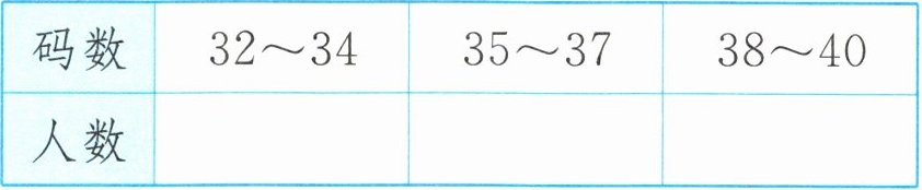 2. 王老师对三(1)班男生的鞋码做了一次调查统计,结果如下。