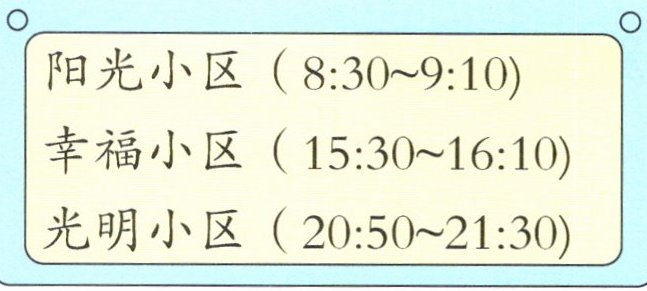 (2)如图是供电公司某天发布的部分小区停电公告,王叔叔住在其中一个小区,下午3时50分他回到家,发现家中停电了,他家住在()。