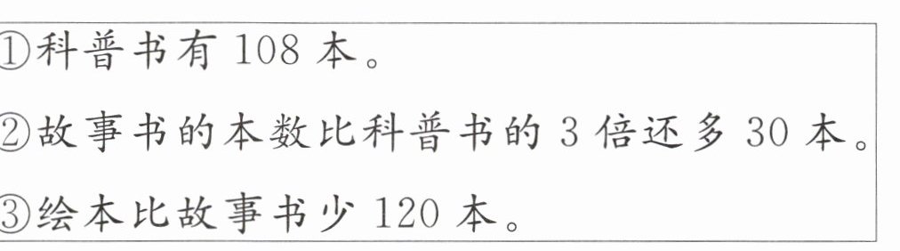 ②故事书的本数比科普书的3倍还多30本。