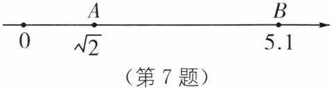 7. 如图,数轴上A、B两点表示的数分别为$\sqrt {2}$和5.1,则A、B两点之间表示整数的点共有(