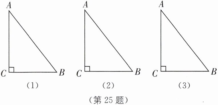 25. 如图(1),有一块直角三角形的绿地,量得两直角边长分别为6m、8m.现在要将绿地扩充成等腰三角形,且扩充部分是以8m为直角边的直角三角形,求扩充后等腰三角形绿地的周长.(图(2)、图(3)备用)