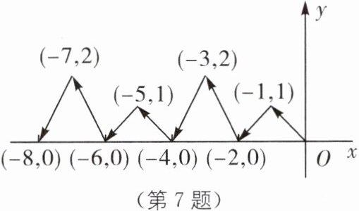 7. 如图,动点$P$在平面直角坐标系中按图中箭头所示方向运动,第$1次从原点运动到点(-1,1)$,第$2次接着运动到点(-2,0)$,第$3次接着运动到点(-3,2)$,…$$,按这样的运动规律,经过第$2024$次运动后,动点$P$的坐标是(