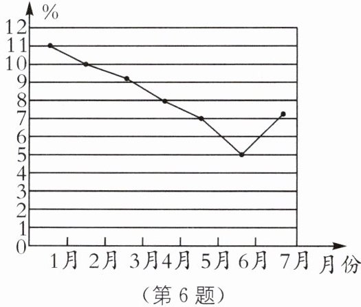 C [解析]由折线统计图可知,1~7月份销售额的增长率始终是正数,即1~7月份销售额在增加,故选项A、B、D不合题意;这七个月中,每月的销售额不断上涨,C说法正确,故本选项符合题意。故选C。