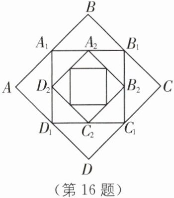 16. 如图,正方形ABCD的边长为1,顺次连接正方形ABCD四边的中点得到第一个正方形$A_1B_1C_1D_1,$顺次连接正方形$A_1B_1C_1D_1$四边的中点得到第二个正方形$A_2B_2C_2D_2……$以此类推,则第六个正方形$A_6B_6C_6D_6$的周长是