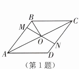 1. 如图,在菱形 $ABCD$ 中,$M$、$N$ 分别在 $AB$、$CD$ 上,且 $AM = CN$,$MN$ 与 $AC$ 交于点 $O$,连接 $BO$。若 $\angle DAC = 28^{\circ}$,则 $\angle OBC$ 的度数为(