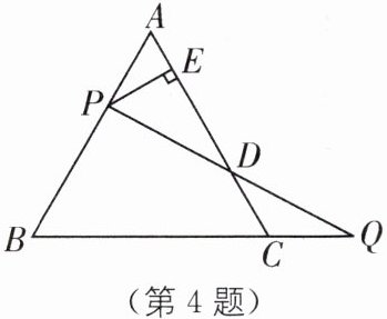4. 如图,过边长为 $3$ 的等边三角形 $ABC$ 的边 $AB$ 上一点 $P$,作 $PE \perp AC$ 于点 $E$,$Q$ 为 $BC$ 延长线上一点,当 $PA = CQ$ 时,连接 $PQ$ 交边 $AC$ 于点 $D$,则 $DE$ 的长为(