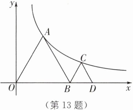 13. (全国初中数学竞赛)如图,点$A$、$C都在函数y = \frac{3\sqrt{3}}{x}(x>0)$的图像上,点$B$、$D都在x$轴上,且使得$\triangle OAB$、$\triangle BCD$都是等边三角形,则点$D$的坐标为____