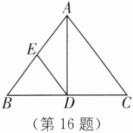 16. 如图,在$\triangle ABC$中,$AB = AC$,$\angle BAC的平分线AD交BC于点D$,$E为AB$的中点,若$BC = 12$,$AD = 8$,则$DE$的长为