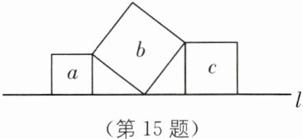 15. 如图,直线$l上有三个正方形a$、$b$、$c$,若$a$、$c的面积分别为5和11$,则$b$的面积为